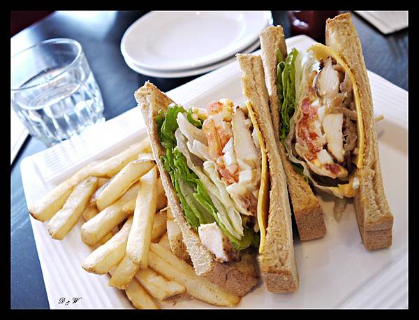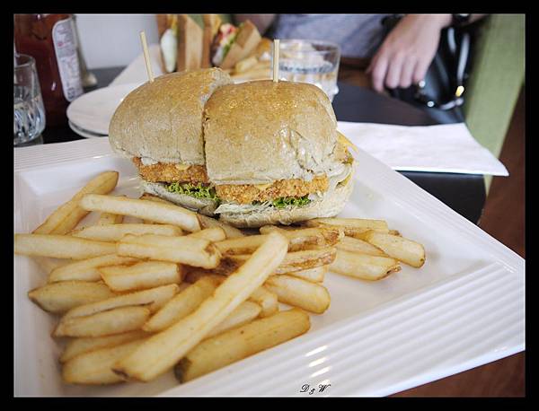 等了一下下後~紐澳良香煎雞肉三明治就上來囉!!!!看他~這麼多薯條,重點是他是帶皮感覺是現削的薯條,太犯規了!!!!痾~茶米又餓了!!!